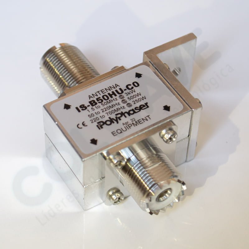 Aunque este supresor de sobretensiones por rayos de radiofrecuencia funciona en un rango de frecuencias de 1,5 MHz a 700 MHz, admite una potencia máxima de 3 kW. El protector contra sobretensiones de RF IS-B50HU-C0 de PolyPhaser incorpora tecnología de tapa de bloqueo y tubo de gas para proporcionar protección a los equipos con una potencia máxima de 3 kW. Nuestro dispositivo de protección contra sobretensiones coaxial para RF se fabrica con una conexión pasamuros UHF de entrada y una salida pasamuros UHF.